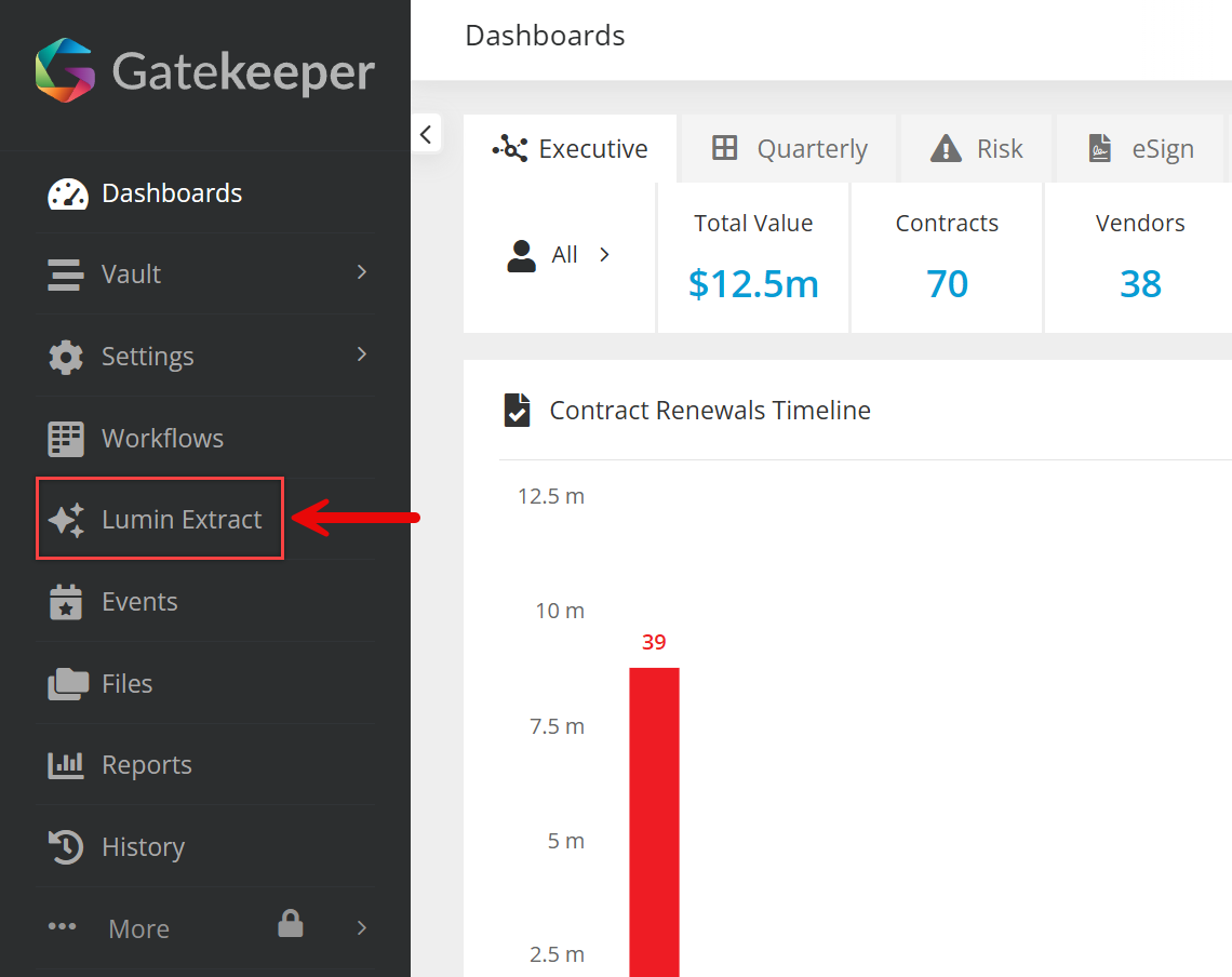 - If a vendor with a variation of the name already exists (for example if Lumin extracts the value Ernst & Young while the existing vendor name is Ernst and Young), Gatekeeper links the contract to that vendor rather than creating a new record.