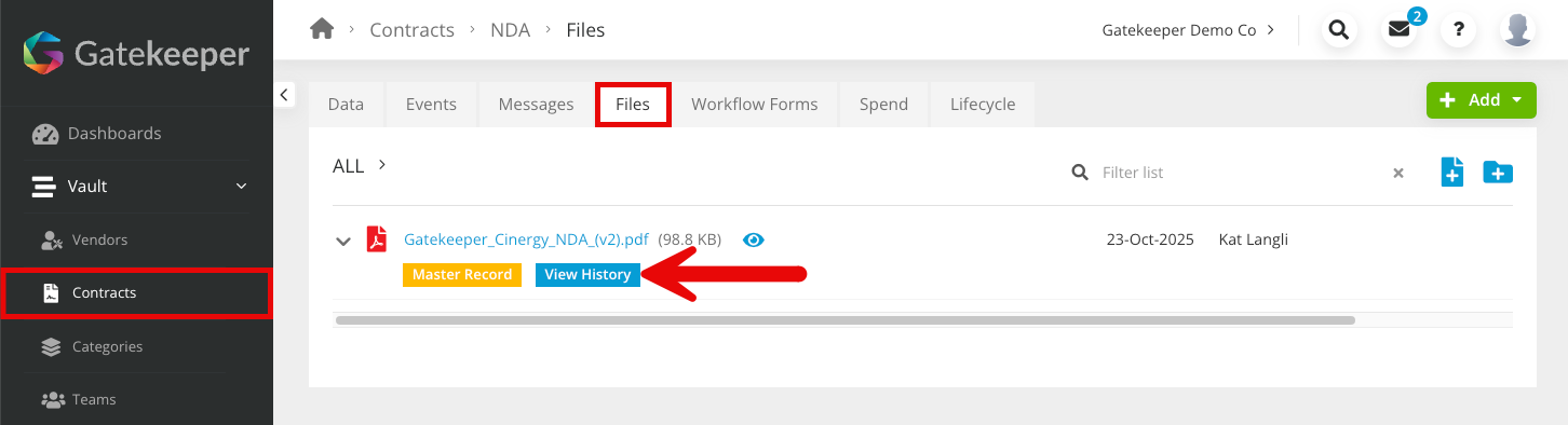 - Sign the contract: gather signatures using Gatekeeper eSign, DocuSign, or an external signature method.