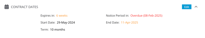 Note: the Rolling Days Notice field is for reference purposes to document the terms of a contract. Numbers entered into this field are not incorporated into automated Workflows or Dashboard visualisations.