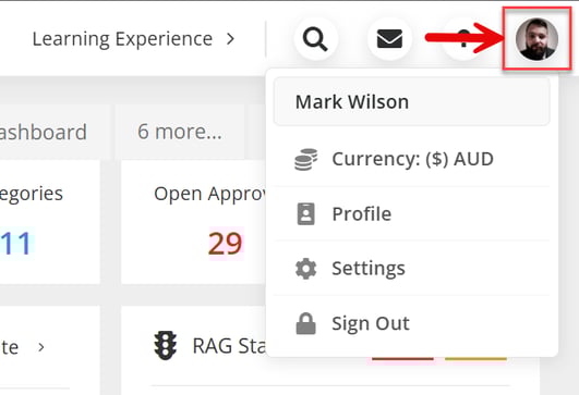 To access your user profile, click the profile icon in the top right-hand corner of Gatekeeper.