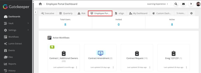 Employee Portal administrators have access to an additional dashboard, allowing them to oversee use of the Employee Portal: