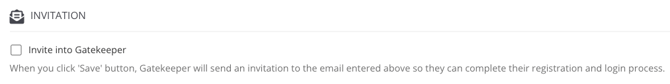 - Select the Invite to Gatekeeper checkbox to send the user an invitation email containing a link for them to login to Gatekeeper.