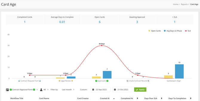 Setting SLA timers allows a visual comparison of average card ages vs the expected SLA deadline (shown as a red line).
